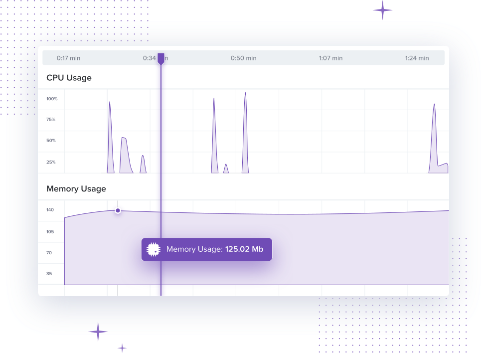 - Janky performance: Monitoring frame rate, CPU usage, and memory consumption can help you detect opportunities to make user interactions smoother, such as slow animations